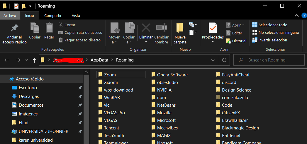 - Presionamos la tecla Windows + R y escribimos %appdata% y damos en Enter, quedaremos en esta carpeta.